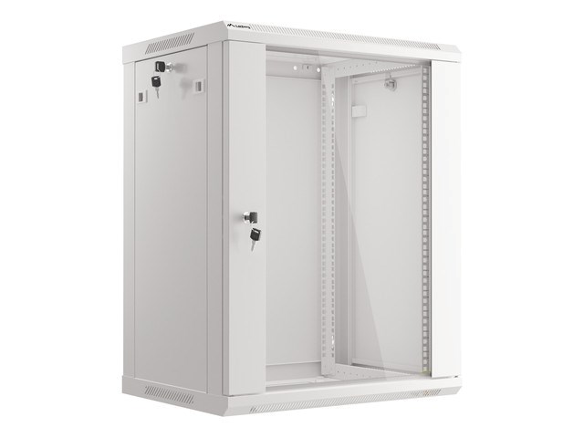 Szafa rack Lanberg WF01-6412-10S (12U; 635mm / 600mm / 450 mm; wisząca; Szklane; 19′; kolor szary)