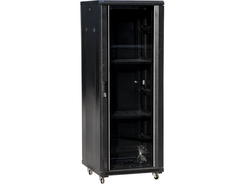 Szafa rack Lanberg FF01-6627-12B (27U; 19′; 1390mm / 600mm / 600 mm; stojąca; Szklane; 800 kg; kolor czarny)
