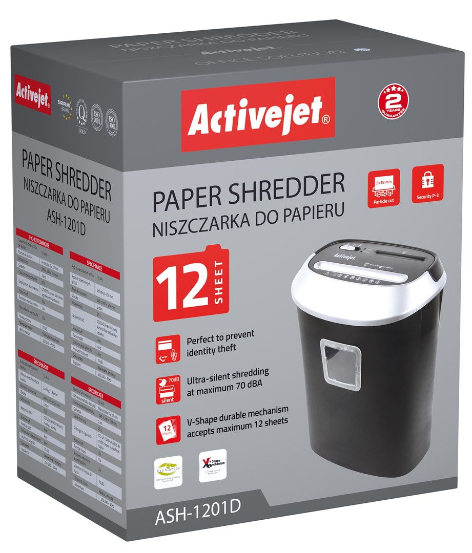 Activejet ASH-1201D Niszczarka do dokumentów, kolor czarny, srebrny.