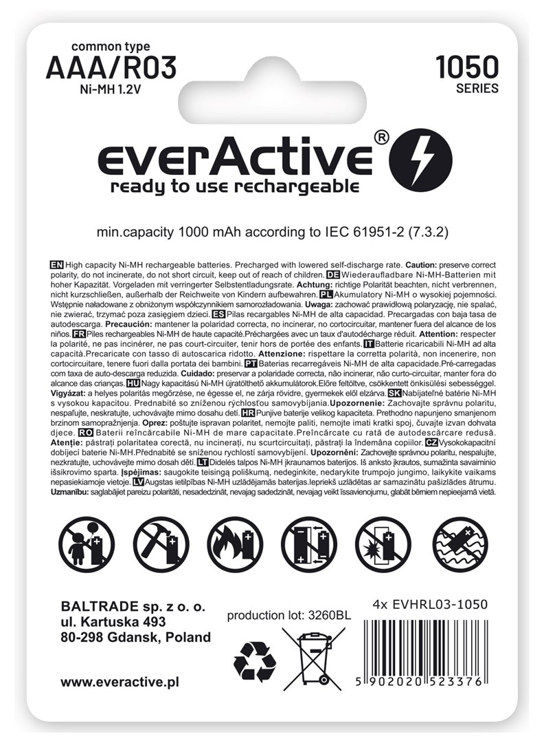 Zestaw akumulatorków everActive Professional line EVHRL03-1050 (1050mAh ; Ni-MH LSD)