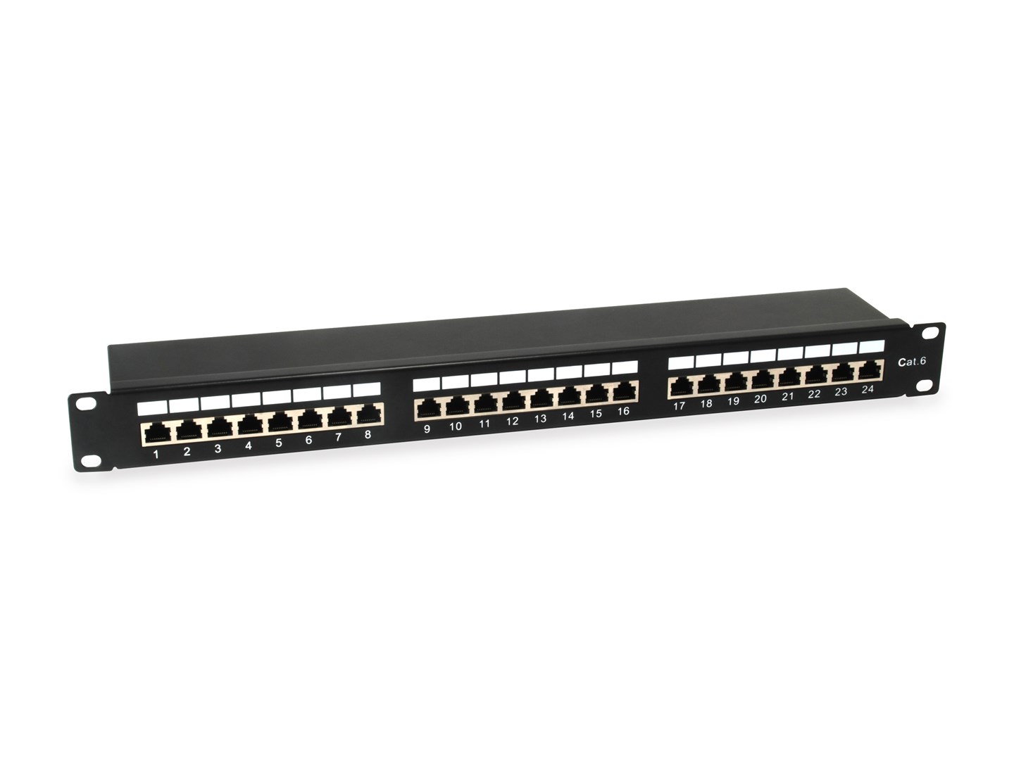 Wyposażenie 19″ Patch Panel 24xRJ45 Cat6 FTP 1U 250MHz RAL7035